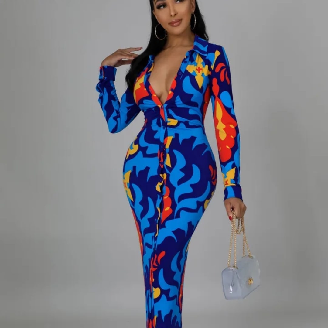 Ultra stretchy button down ruched waisted dress