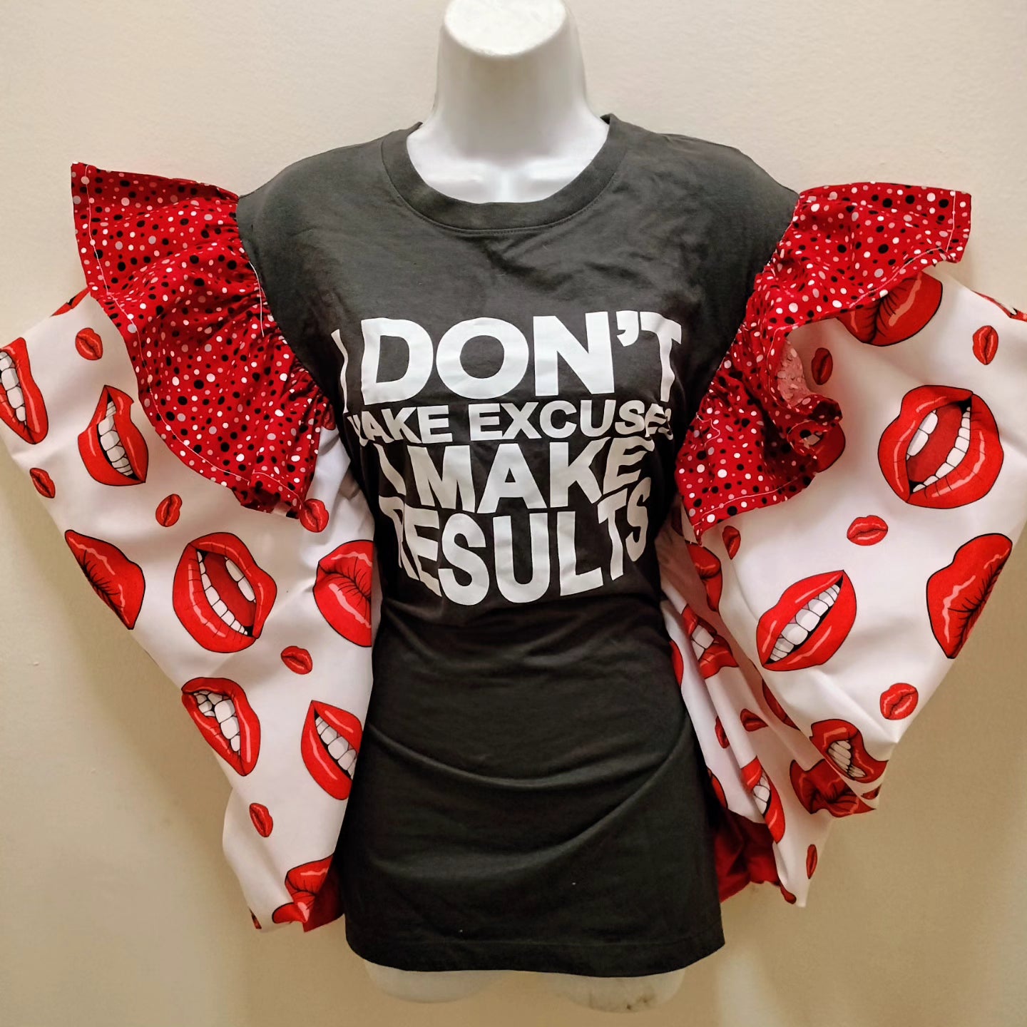 Introducing our Custom T-shirts, designed with a stylish grey full cut and statement-making puffy 3/4 sleeves in red, black, and white fabric. Made for comfort and style, upgrade your wardrobe with this unique piece.