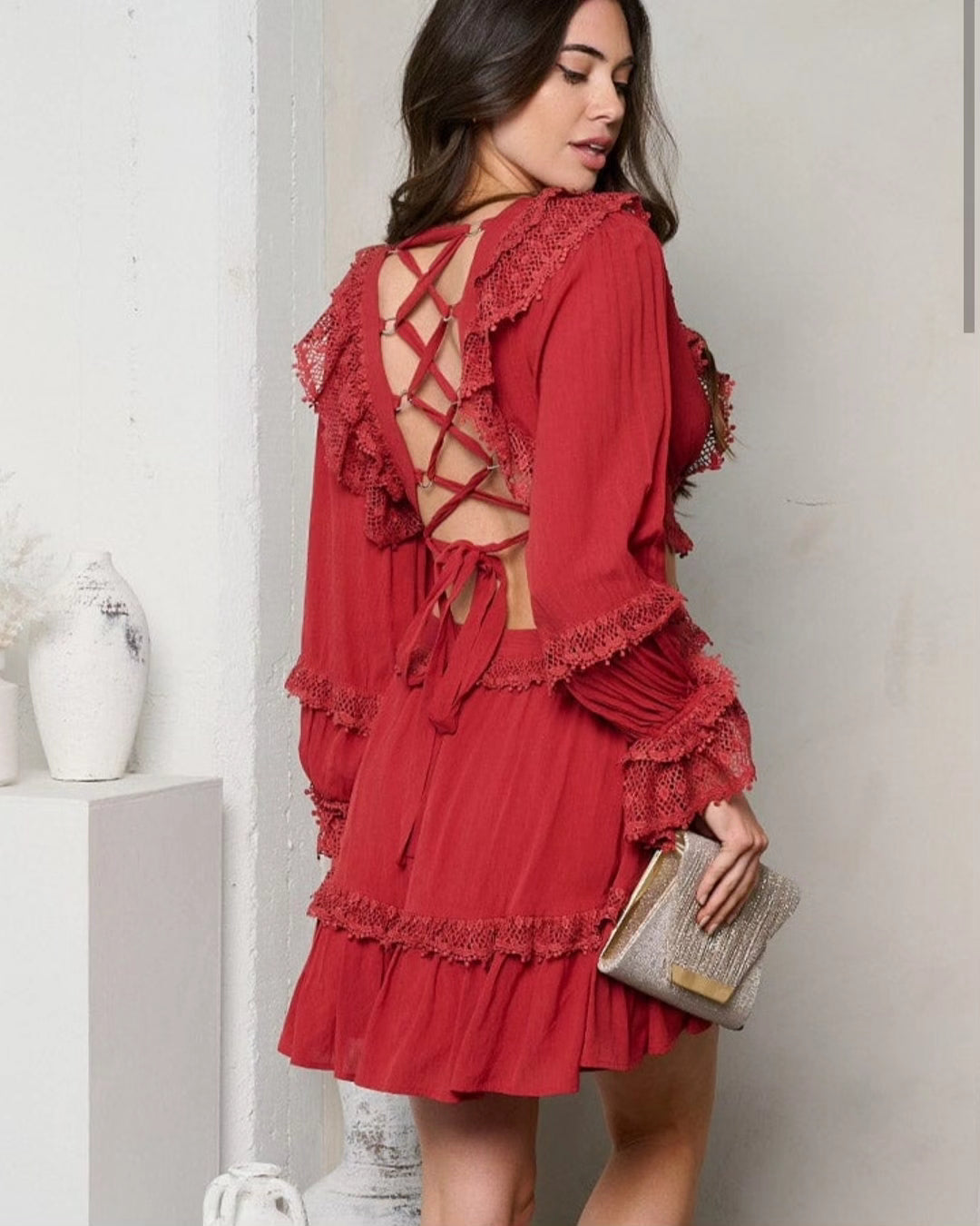Flirty cotton mini dress with lace up back